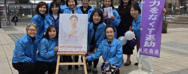 11月12日、「女性に対する暴力をなくす運動」街頭キャンペーンに13名で参加致しました。また、11月12日から25日までSI鹿児島が寄贈しました鹿児島中央駅東口時計塔がライトアップされました。 …