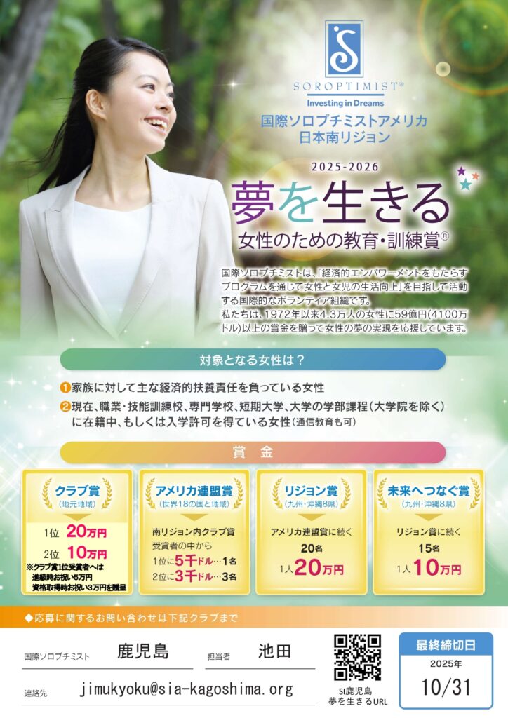 「夢を生きる:女性のための教育・訓練賞」のご案内